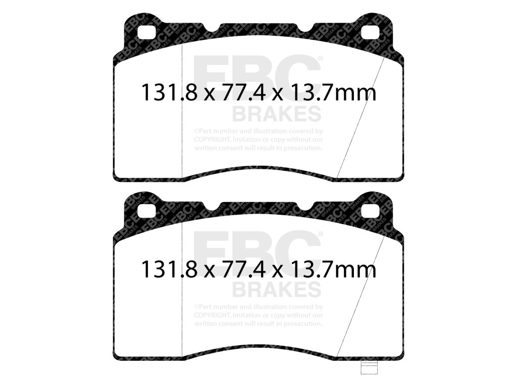 Brzdové platničky EBC Brakes Yellowstuff™ sú univerzálne brzdové dosky pre vodičov, ktorí hľadajú maximálny brzdný účinok bez nutnosti výmeny celého systému. Vhodné pre športové sedany a hot-hatche, SUV, pick-upy či pickupy – tam, kde je potrebná istota pri každom stlačení pedála.