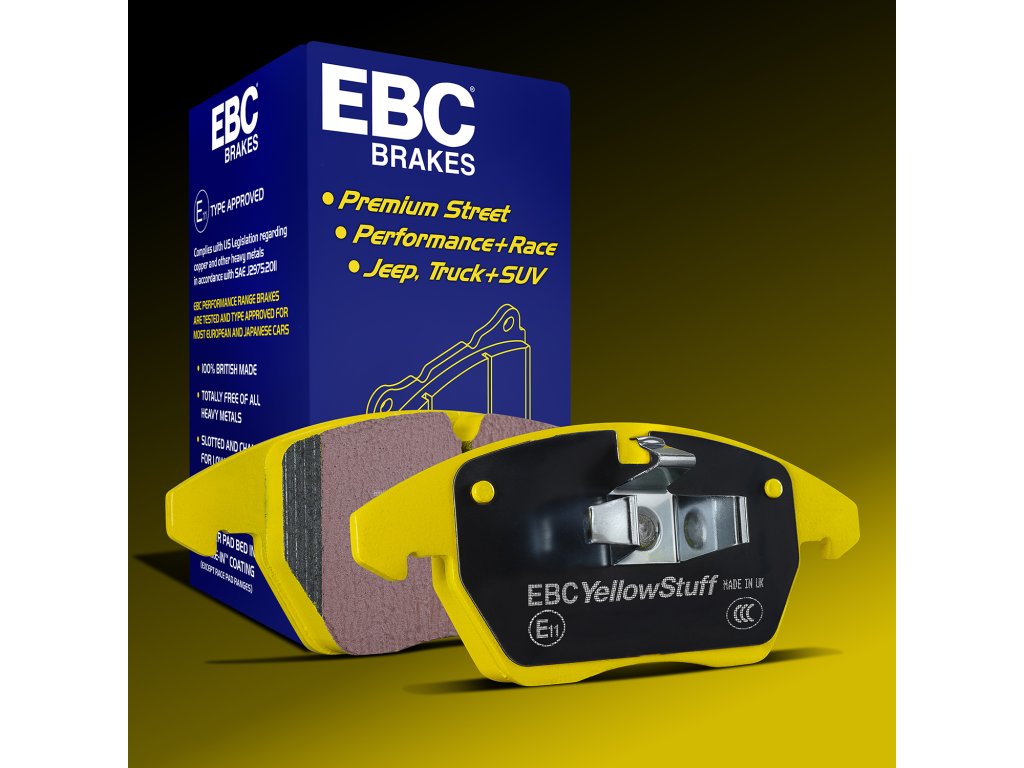 Brzdové platničky EBC Brakes Yellowstuff™ sú univerzálne brzdové dosky pre vodičov, ktorí hľadajú maximálny brzdný účinok bez nutnosti výmeny celého systému. Vhodné pre športové sedany a hot-hatche, SUV, pick-upy či pickupy – tam, kde je potrebná istota pri každom stlačení pedála.