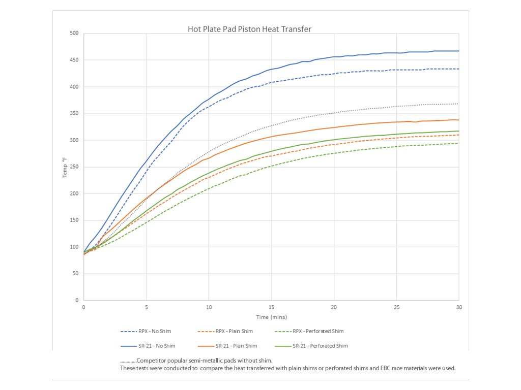 Pri intenzívnom brzdení sa teplo generované trením medzi brzdovými doskami a kotúčmi prenáša do brzdových strmeňov (brzdičov), kde môže poškodiť tesnenia piestikov a spôsobiť únik brzdovej kvapaliny. Brzdové podložky EBC Brakees Titanium Shims sú navrhnuté tak, aby tento problém efektívne riešili.