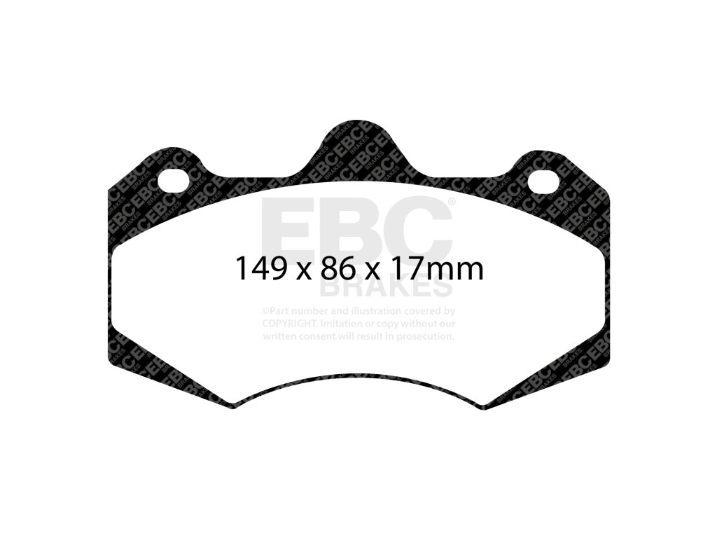 Brzdové platničky RP-X™ nie sú homologované pre bežnú premávku (bez R90 certifikácie), čo podčiarkuje ich čisto závodné určenie. V kombinácii s dvojdielnymi plávajúcimi kotúčmi EBC Racing tvoria ideálny základ pre profesionálny brzdný systém.