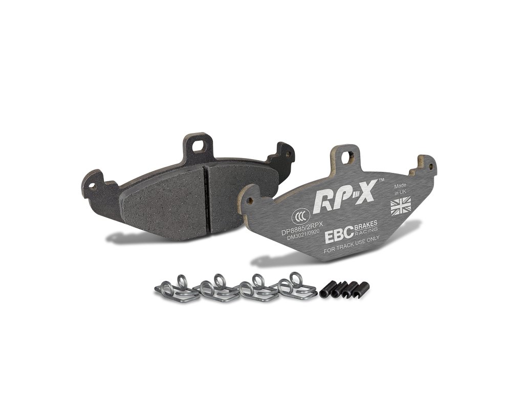 Brzdové platničky RP-X™ nie sú homologované pre bežnú premávku (bez R90 certifikácie), čo podčiarkuje ich čisto závodné určenie. V kombinácii s dvojdielnymi plávajúcimi kotúčmi EBC Racing tvoria ideálny základ pre profesionálny brzdný systém.